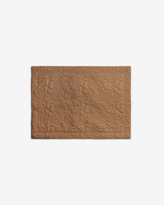 Richly quilted in warm cinnamon hues, these shams are finished with intricate stitched motifs that add depth, texture, and artisanal character. Designed to bring cozy luxury and refined warmth to the bedroom, they complete the bed with an inviting, elevated finish.