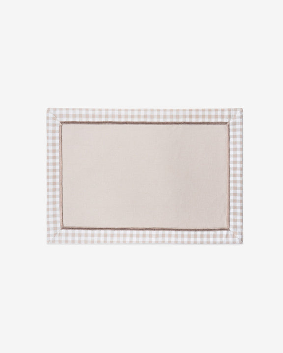 Framed with a classic gingham border, this placemat brings cozy, rustic charm to the table. Subtle and inviting, it adds warmth and comfort to everyday dining while still feeling polished for gatherings.