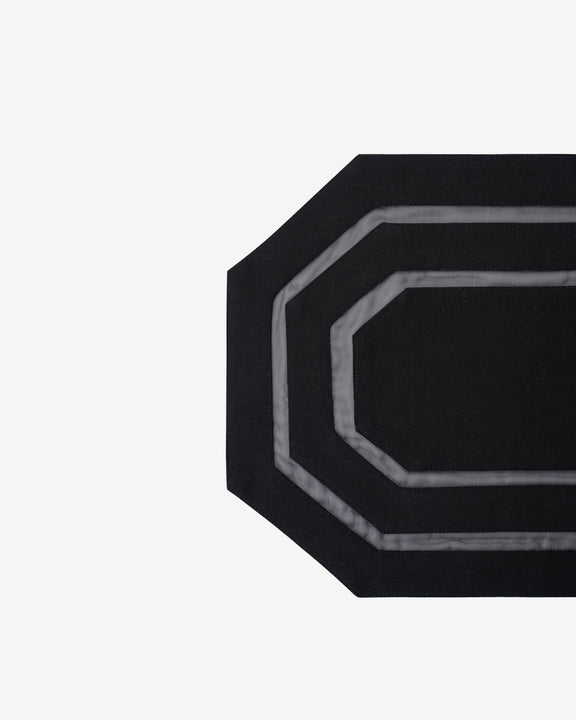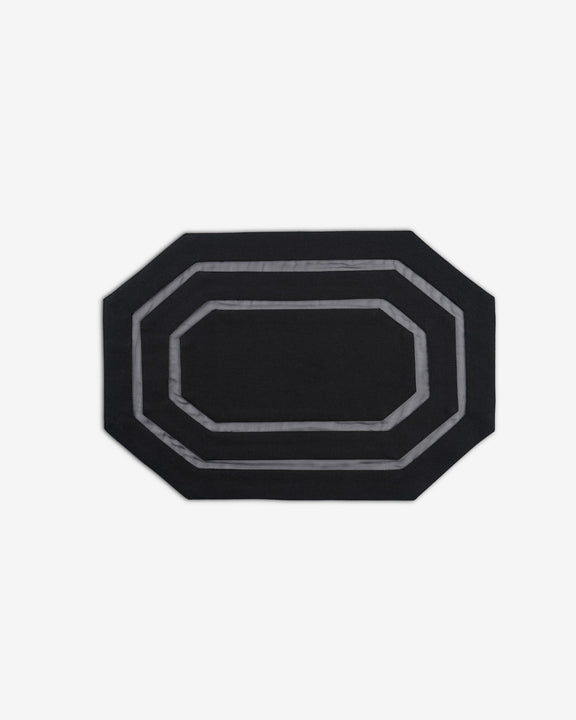 A sleek black placemat with a structured octagonal silhouette, finished with subtle tonal border detailing. Contemporary and understated, it brings clean definition to a modern table setting.
